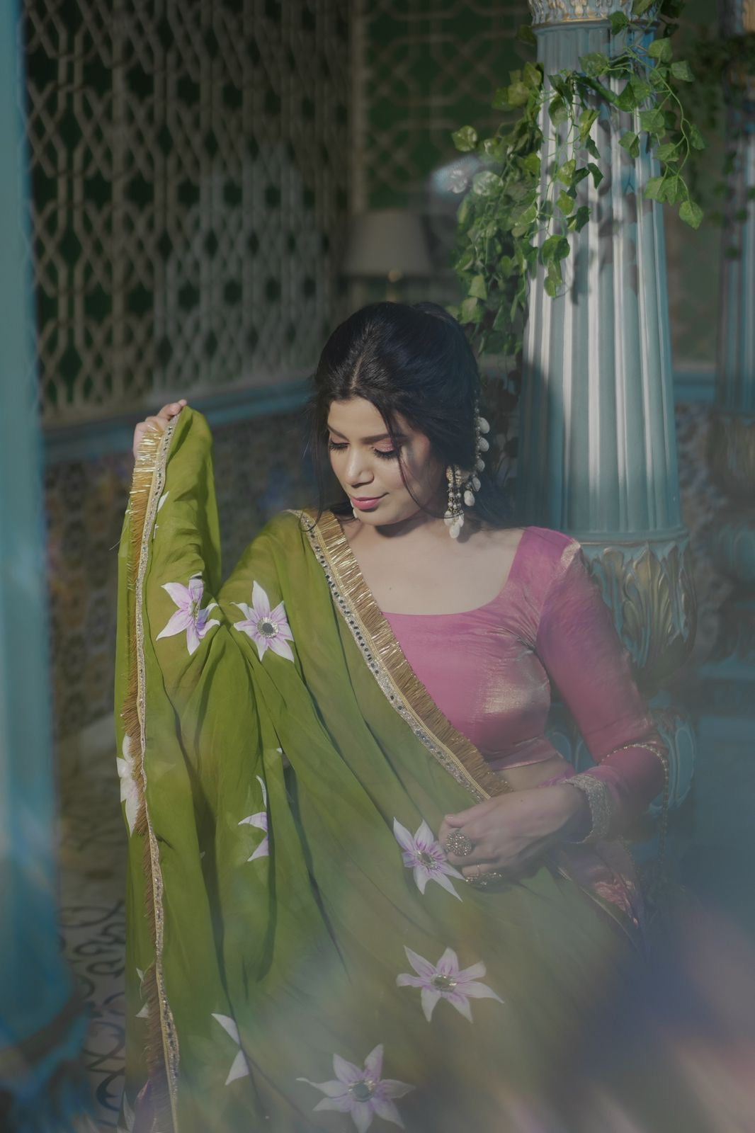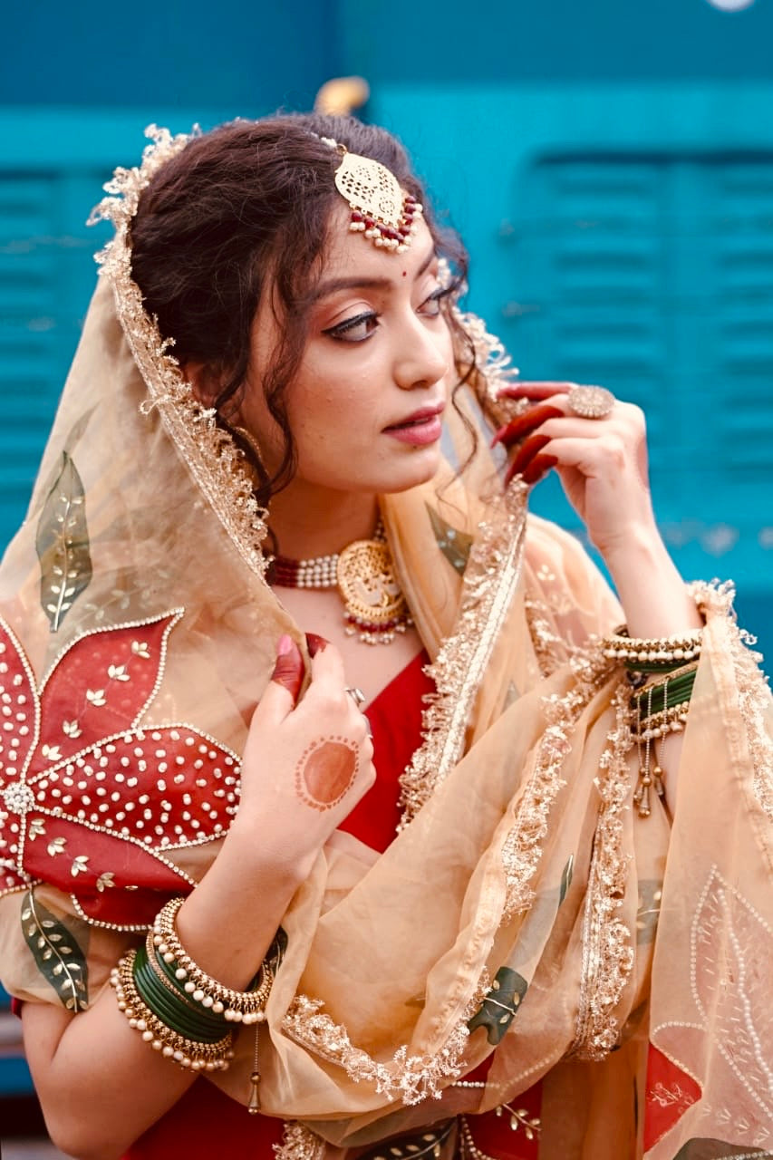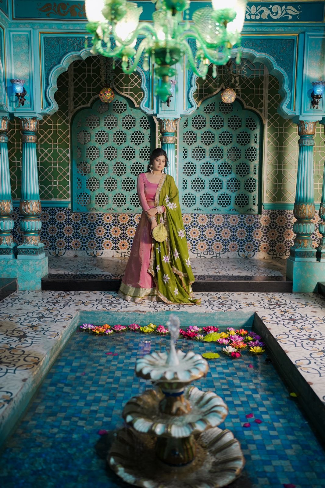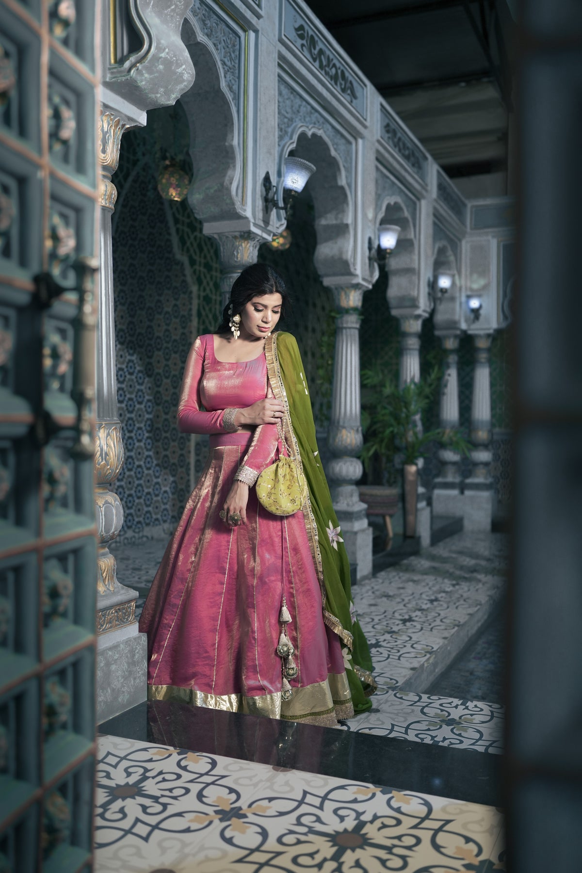 Wrapped in heritage and handcrafted blends regal pink silk with a lush green duppata -A celebration of tradition, charm and the artistry of paintika.